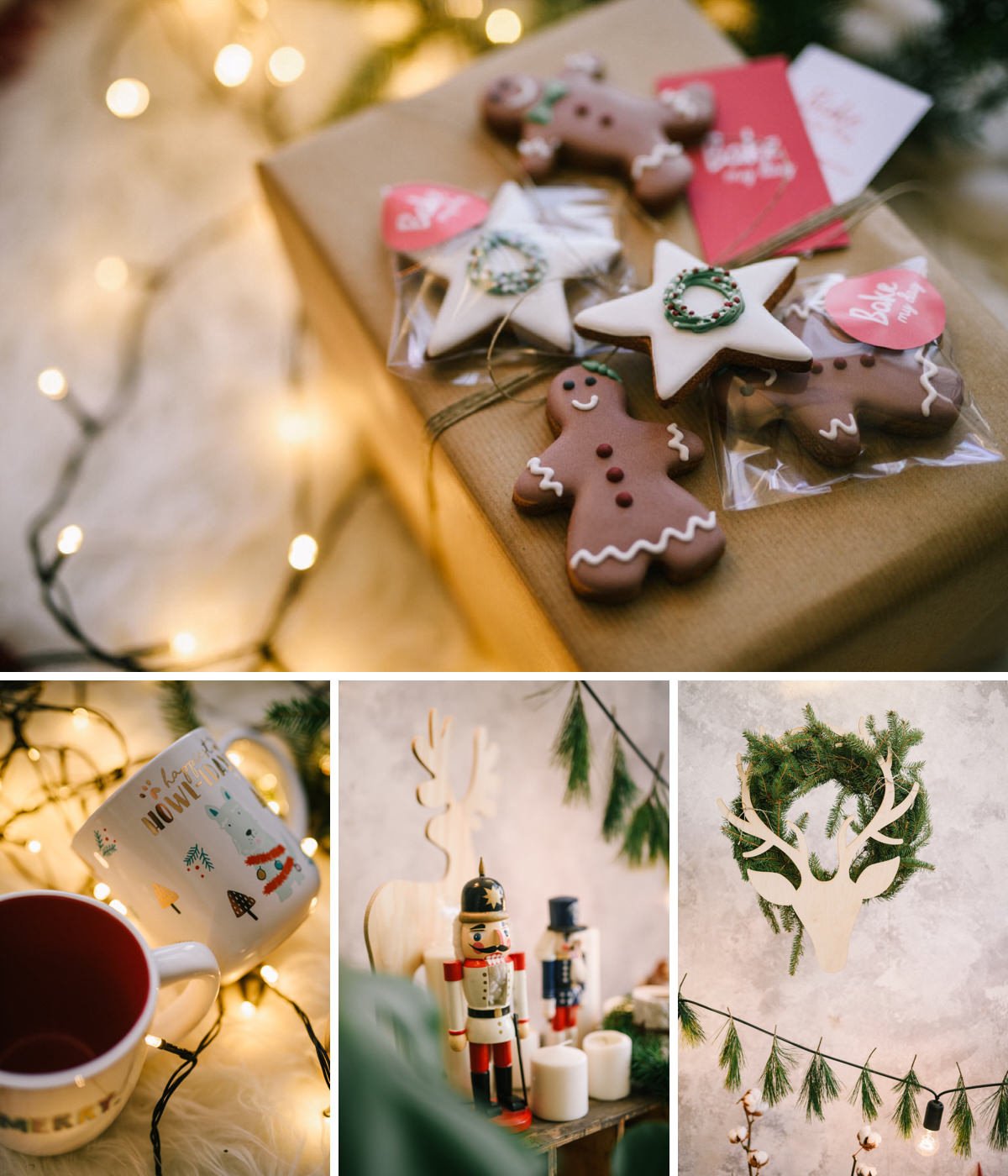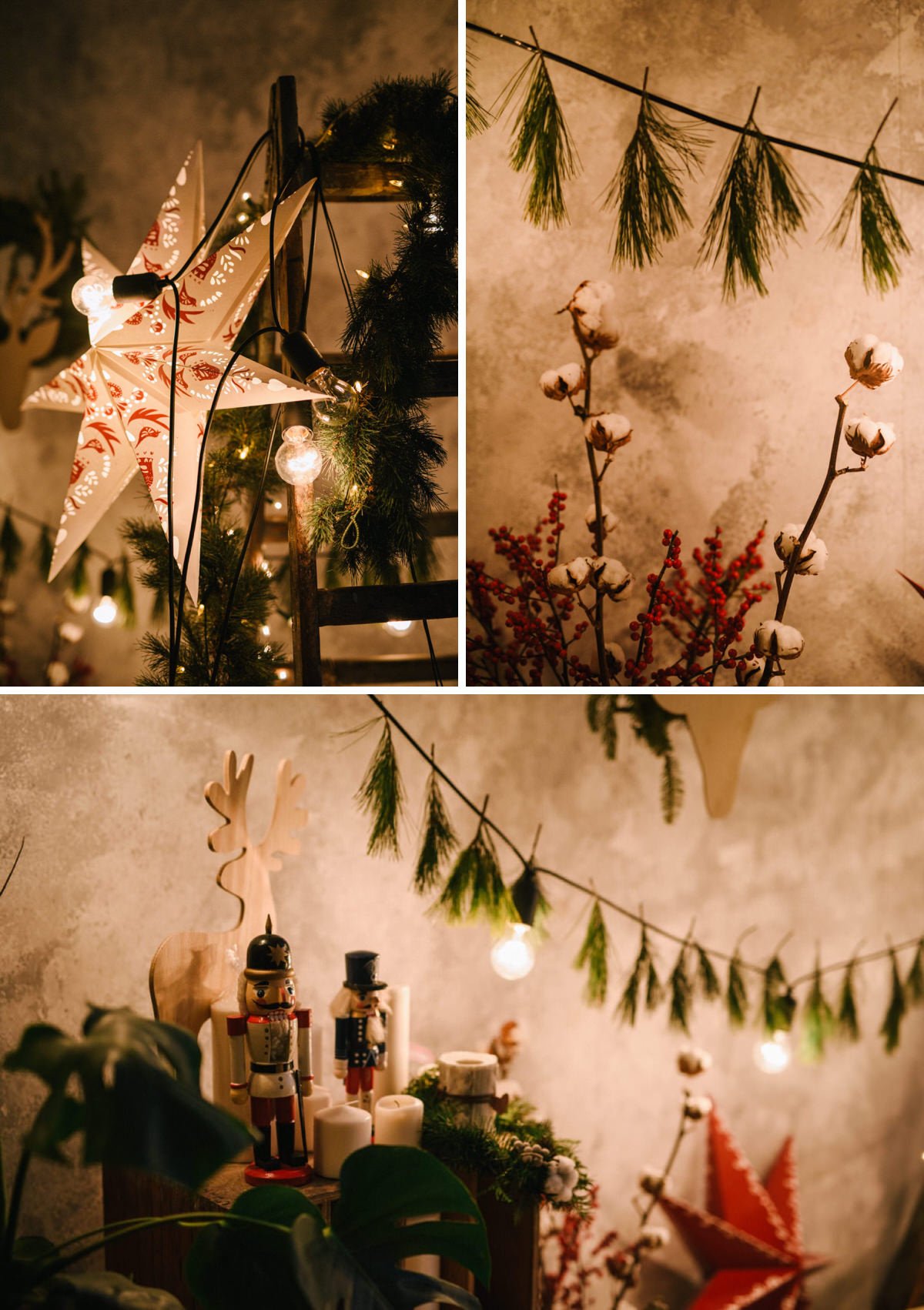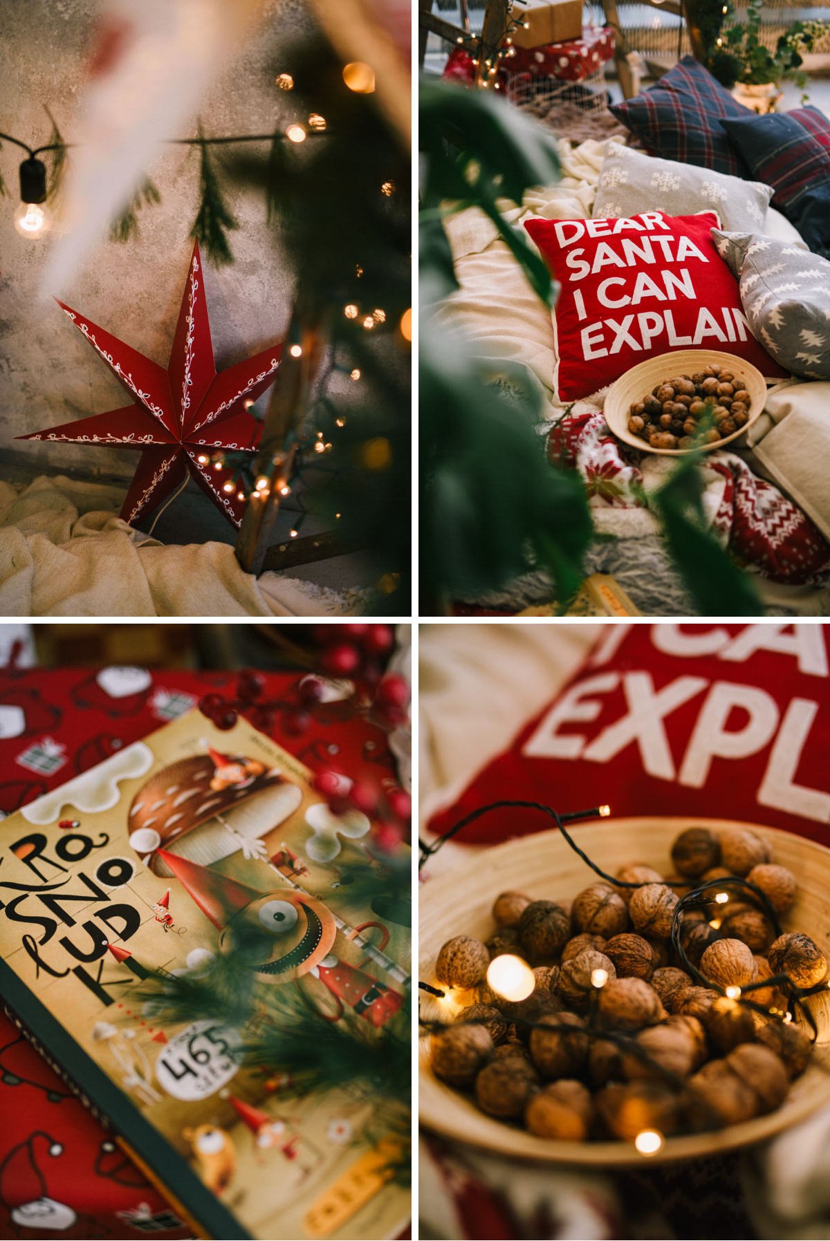 Przygotowałyśmy dwie opcje: minimalistyczną zieloną i przytulną hygge, z myślą o tym, aby każdy bez względu na wiek czuł się w nich dobrze. Cudownie było patrzeć jak wszyscy idealnie odnaleźli się w rozrzuconych kocach i poduchach, z dziadkami do orzechów, orzechami, krasnalami czując atmosferę Świąt.