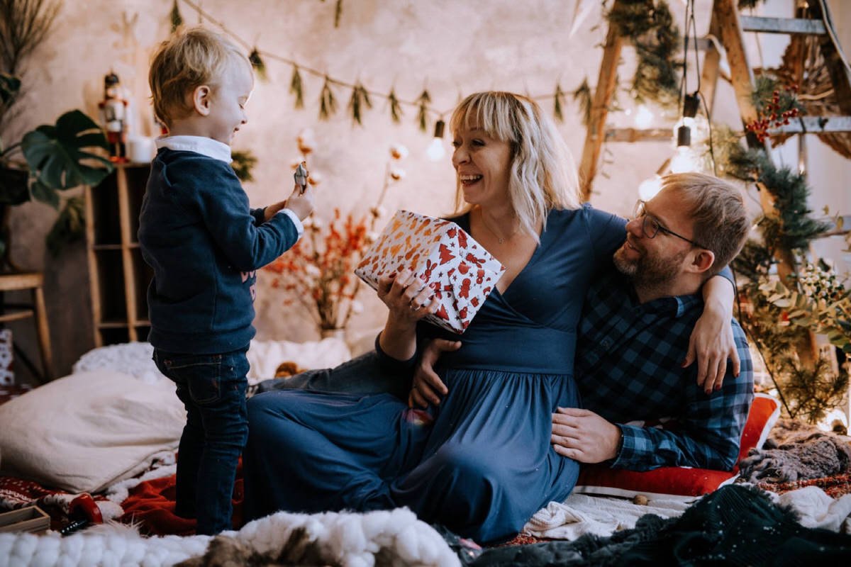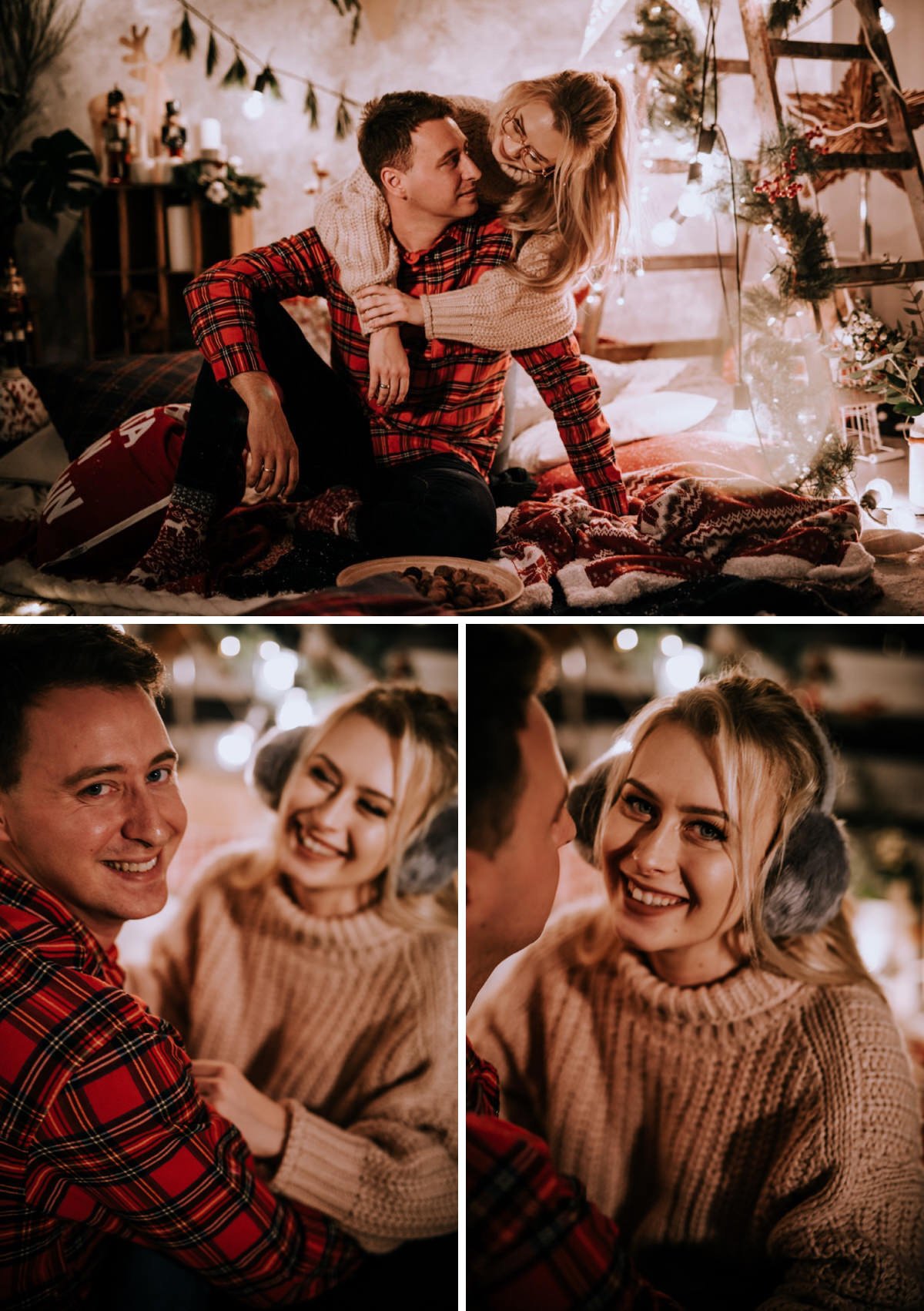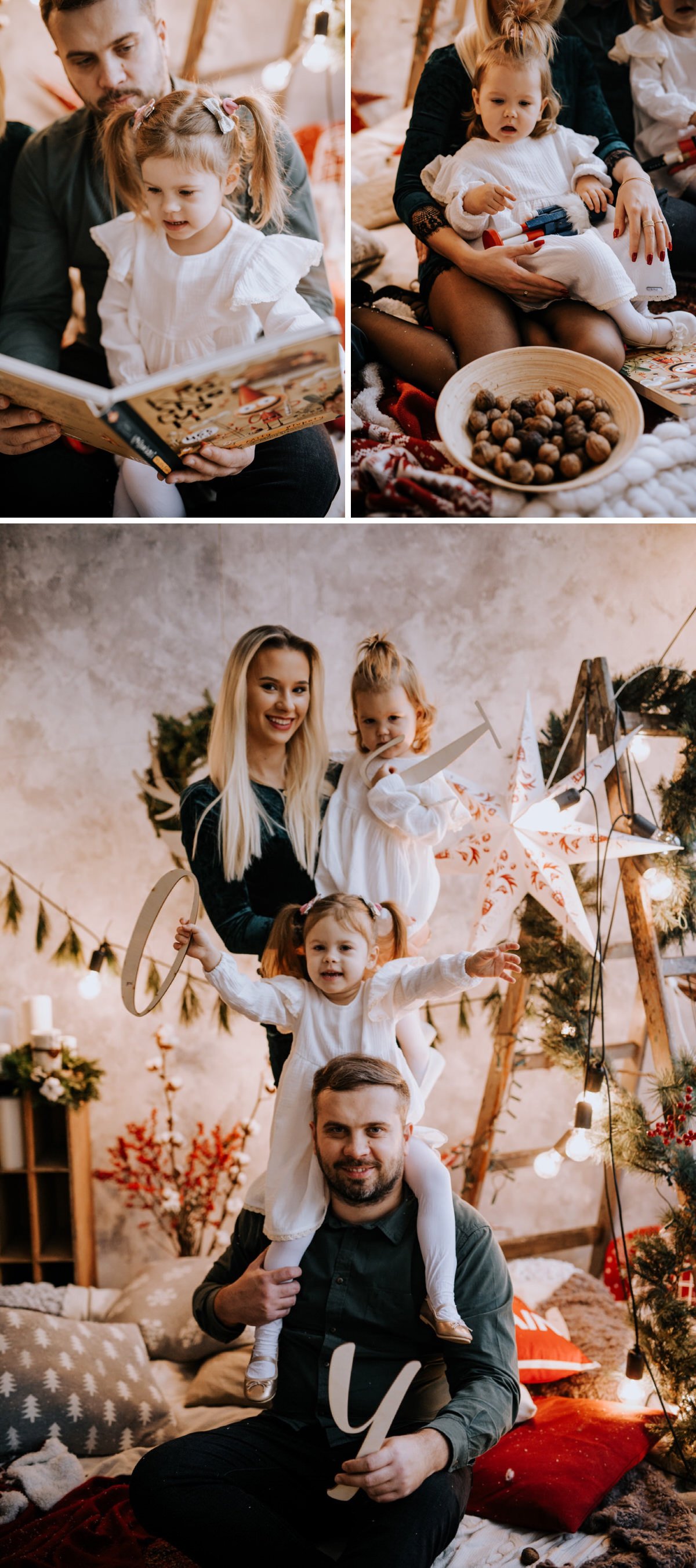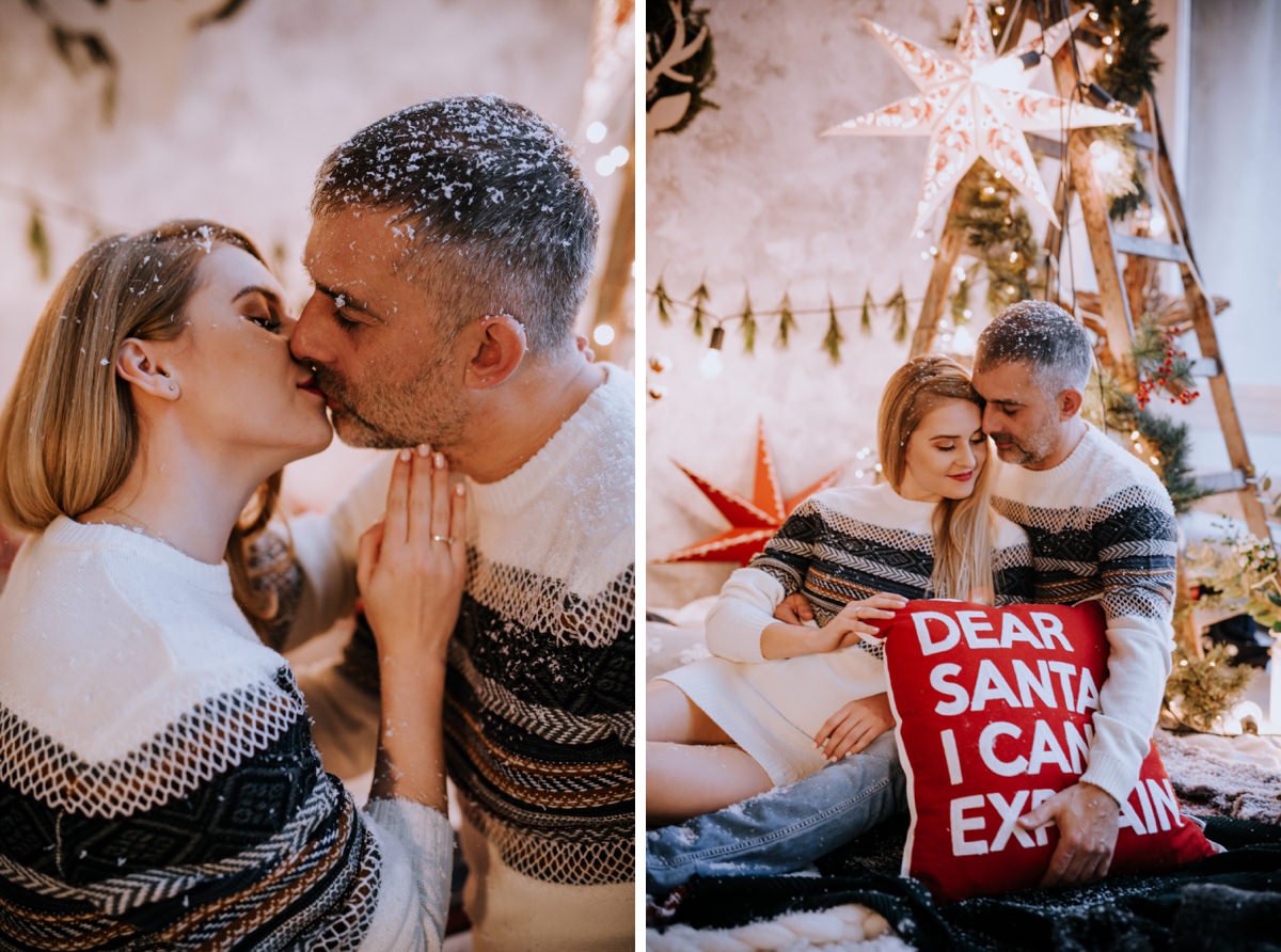 Na sesji zjawiły się nie tylko dzieci i ich rodzice, ale co mnie szczególnie ucieszyło – zaręczone pary i młodzi nowożeńcy, którzy w tym roku wzięli ślub i piszą swoją nową, wspólną historię. To była super okazja do tworzenia nowych tradycji i zrobienia sobie pamiątki z okazji pierwszych małżeńskich Świąt Bożego Narodzenia.