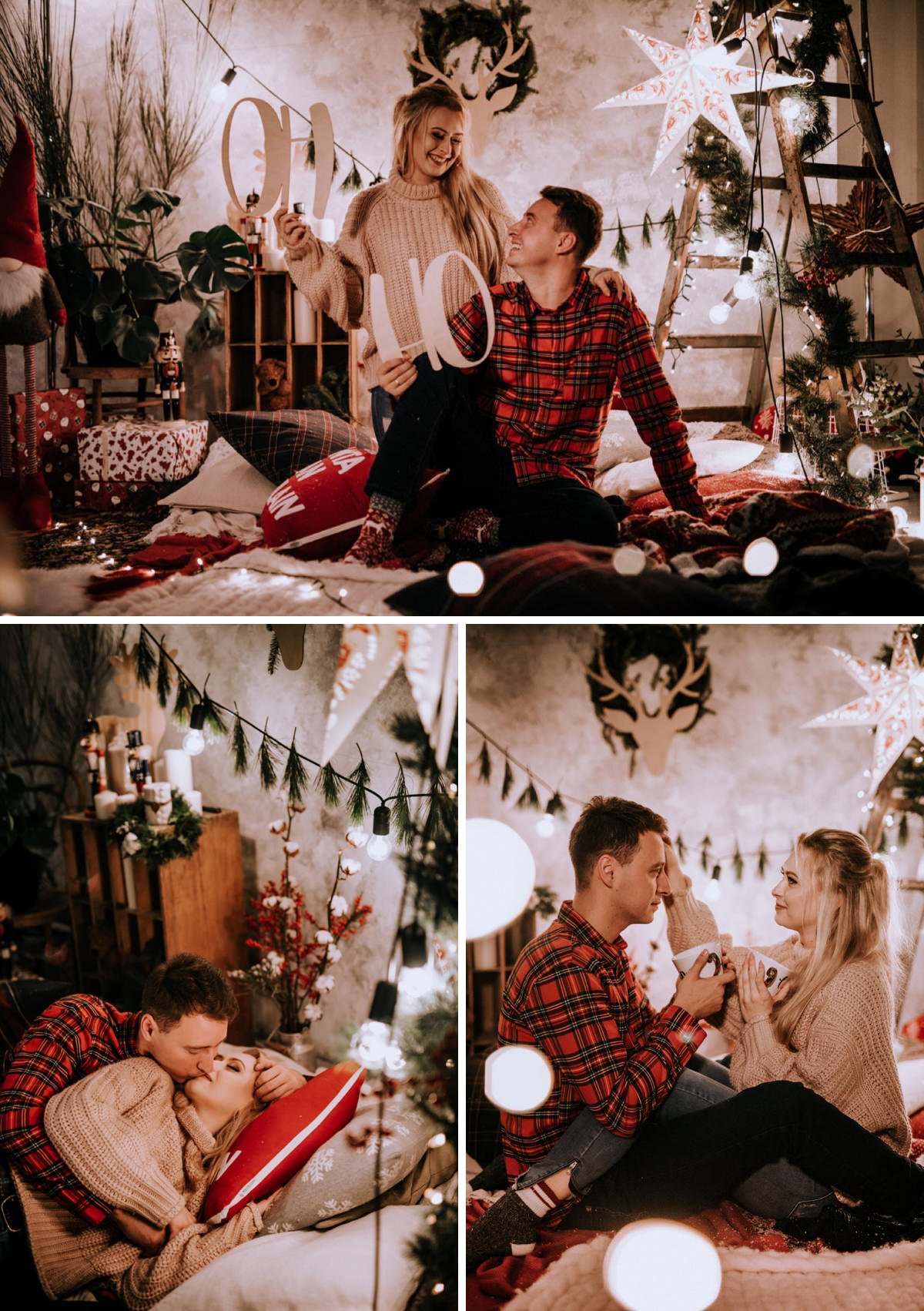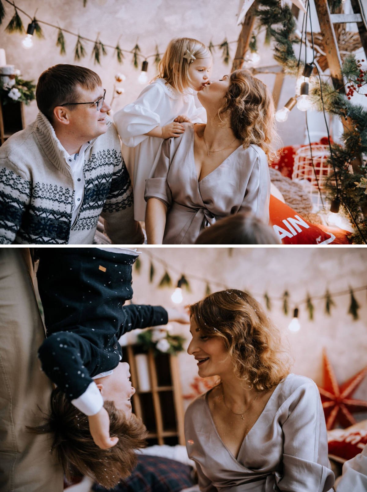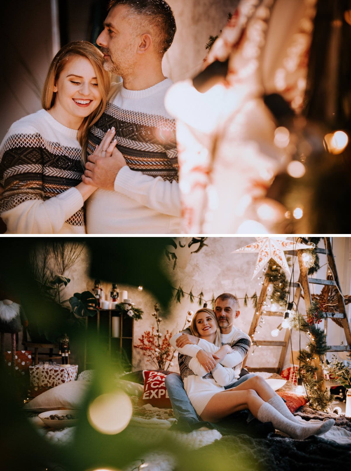 Na sesji zjawiły się nie tylko dzieci i ich rodzice, ale co mnie szczególnie ucieszyło – zaręczone pary i młodzi nowożeńcy, którzy w tym roku wzięli ślub i piszą swoją nową, wspólną historię. To była super okazja do tworzenia nowych tradycji i zrobienia sobie pamiątki z okazji pierwszych małżeńskich Świąt Bożego Narodzenia.