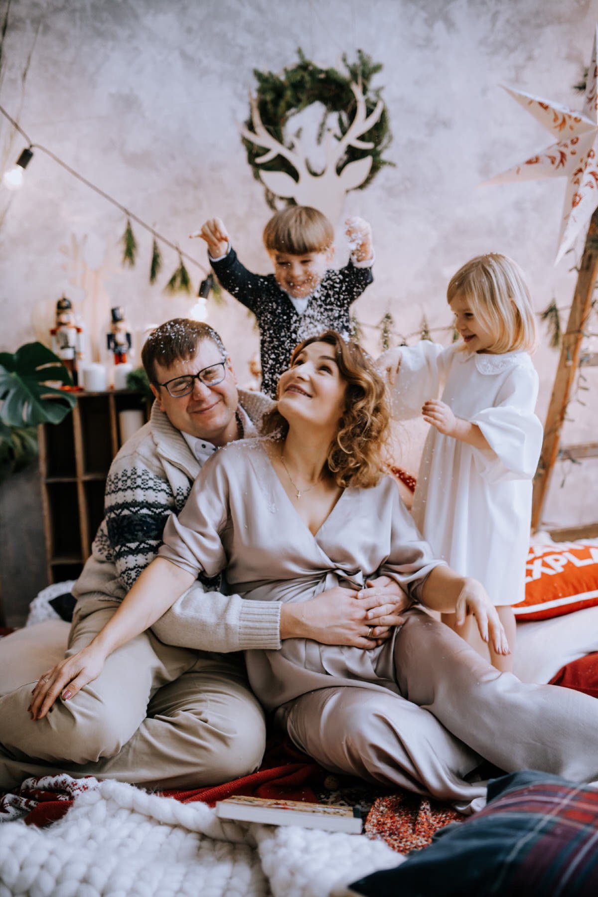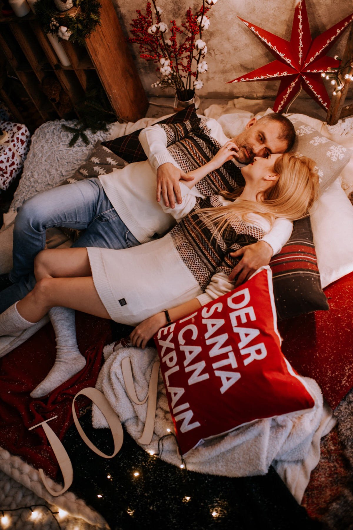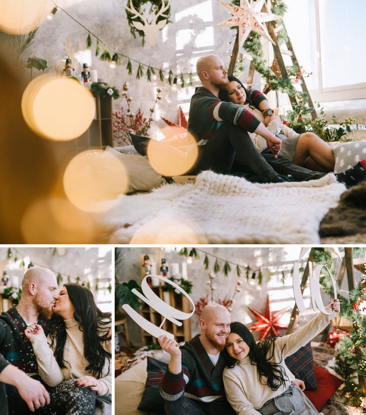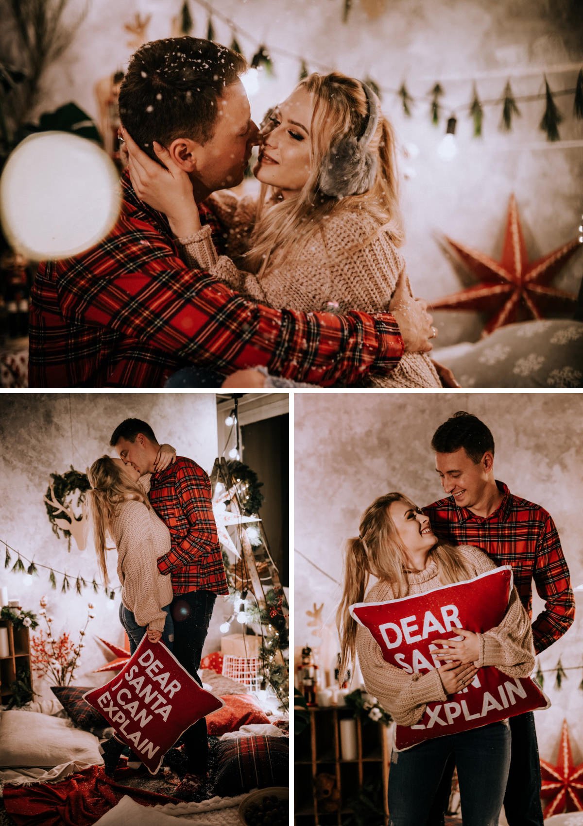 Na sesji zjawiły się nie tylko dzieci i ich rodzice, ale co mnie szczególnie ucieszyło – zaręczone pary i młodzi nowożeńcy, którzy w tym roku wzięli ślub i piszą swoją nową, wspólną historię. To była super okazja do tworzenia nowych tradycji i zrobienia sobie pamiątki z okazji pierwszych małżeńskich Świąt Bożego Narodzenia.